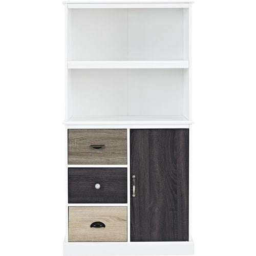 View full detailsTwo large open shelves help to keep books, binders and notebooks organized while the 4 fabric bins are great for concealed storage. Beautiful text...