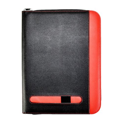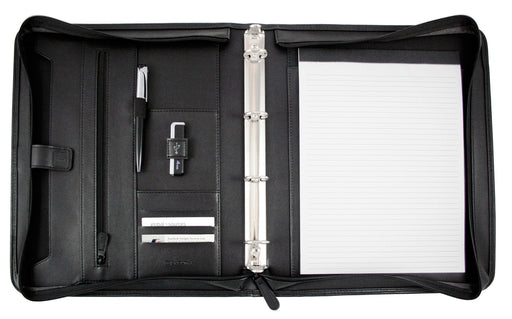 View full detailsPractical case with four ring binder mechanism Soft feel, leather look material Three sided zip closure Tablet pocket and organiser section Two op...