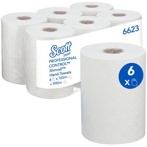 View full detailsEach white Slimroll paper towel roll contains 165 m of 1-ply, embossed disposable towels, which equals 660 sheets Soft, skin-friendly Scott Contro...