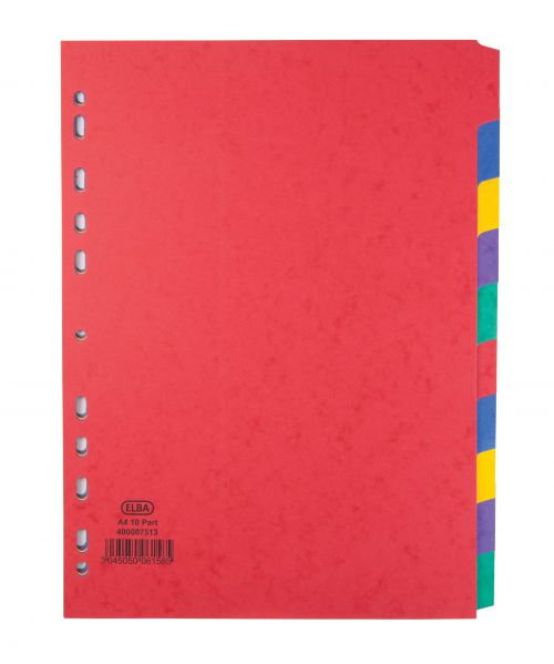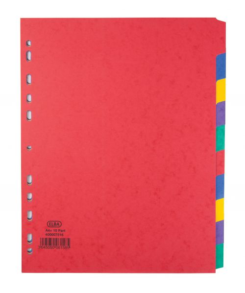 View full detailsEuro Punched Pressboard A4 Material: cardboard Description Elba Divider A4 10-Part Pressboard. Euro punched spine to suit all file mechanism...