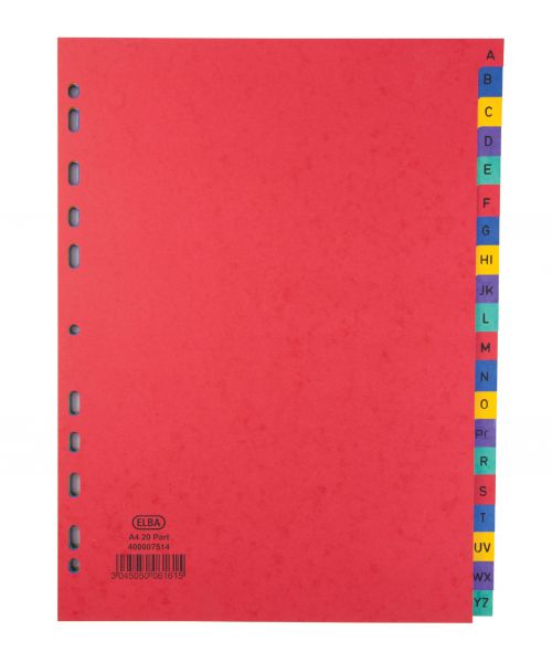 View full detailsColoured pressboard dividers A-Z A4 Size Coloured tabs to allow quick and easy identification Strong cardboard 225g Description Elba Divider...