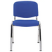 Vormontiert und voll stapelbar lassen sich die Konferenzstühle mit den Maßen 810 (H) x 530 (B) x 500 (T) mm sicher und platzsparend verstauen. Sie bestehen aus hochwertigen blauen Stoffpolstern, sind sehr leicht zu reinigen und bieten einen weichen und bequemen Sitz, während ihre eleganten Chromrahmen mit Gummifüßen einen sicheren Bodenschutz bieten. Auf Wunsch sind auch einfach zu montierende Armlehnen erhältlich.