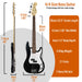 • HIGH GRADE MATERIALS - Full size right-handed 4-string electric bass guitar in black with light steel strings ideal for starter musicians. The iconic P-Style design is comfortable for all players and the C shaped neck makes gripping the maple fretboard easy. A classic single coil split pick-up gives you a deep, punchy and clear tone and the 4 saddle independently adjustable bridge locks in precise tuning.