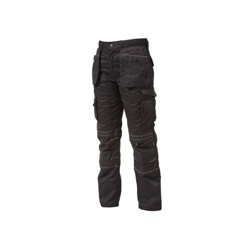 - WORKWEAR: A functional Black coloured work trouser featuring Cordura holster pockets and knee pad pockets.