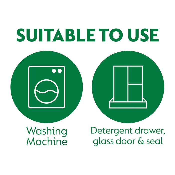 • Sanitising formula reaches even hidden areas of your machine. Removes limescale and dirt when used regularly. Stops bad odours, leaving a lasting freshness in the machine.