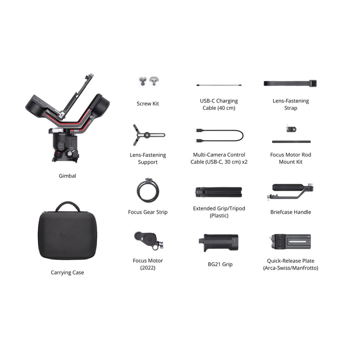 • The DJI RS 3 Combo includes the redesigned RS 3 gimbal stabilizer, an even lighter and sleeker gimbal than the Ronin RSC 2 at only 2.8 lb and with a payload of up to 6.6 lb.