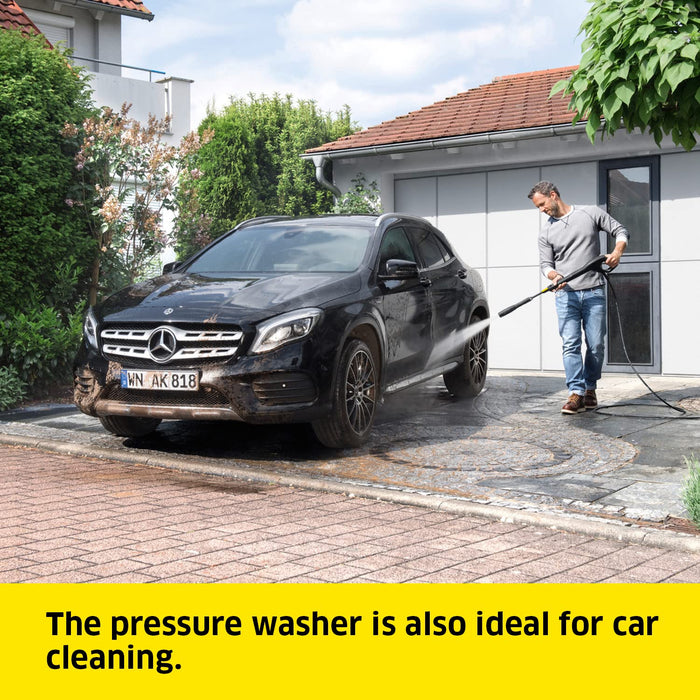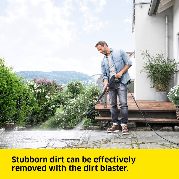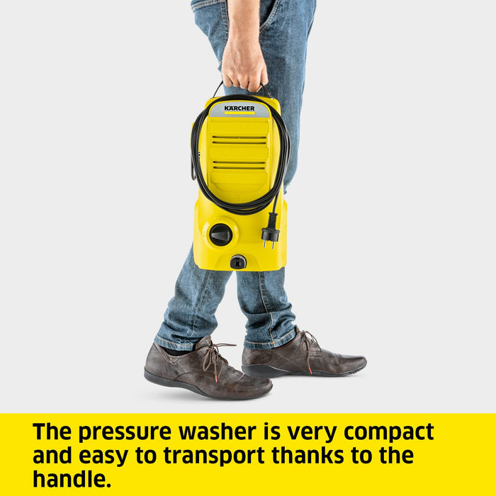 - Scope of delivery: The set includes the Kärcher Pressure Washer K 2 Compact, a high-pressure gun, a 4 m high-pressure hose, a spray lance and a dirt blaster