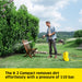 - Effective cleaning: The K 2 Compact pressure washer effectively removes dirt at a pressure of 110 bar with a flow rate of 360 l/h and an area output of 20 m²/h