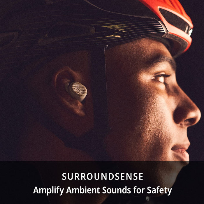 - SurroundSense: Keeps you on top of what's going on outside of your earbuds; wind guarded microphone monitors ambient noise, mixing it into the audio signal for increased spatial awareness
