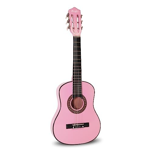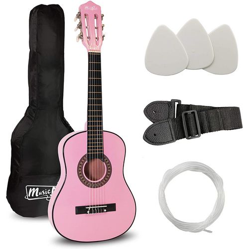 • Teach or learn to play music with the Music Alley MA-51 Junior Classical Acoustic Guitar. Designed for kids, this 1/2-size instrument features nylon strings and a slotted headstock for an authentic look and feel.