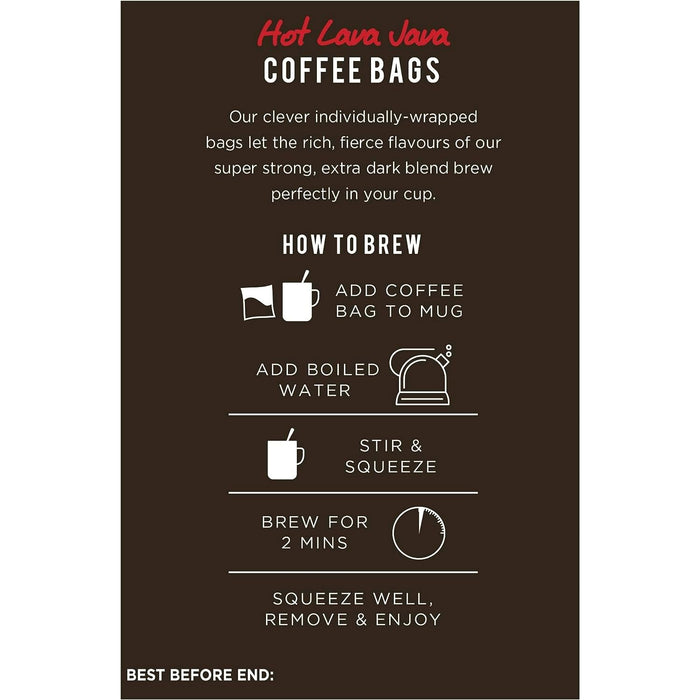 - Add Coffee bag to mug - Add freshly boiled water - Stir and squeeze - Brew for 2 mins - Squeeze and removeManufacturer Contact InformationTaylors of Harrogate, HG2 7LD.