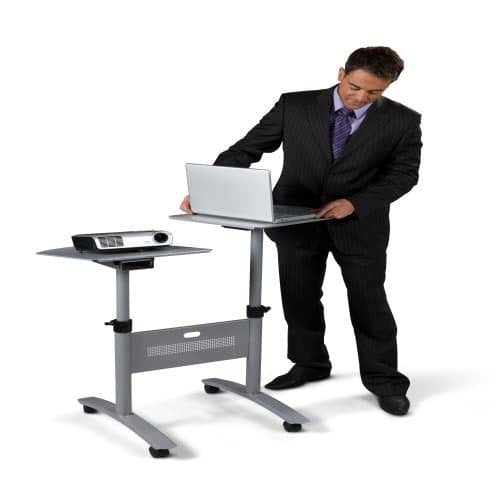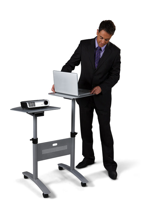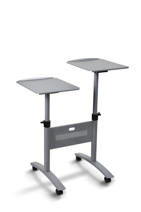 • Twin stem accommodates any laptop/LCD or DLP projector combination. Complete flexibility for any environment with the ability to adjust height, angle and platform direction. Platform pivots 360