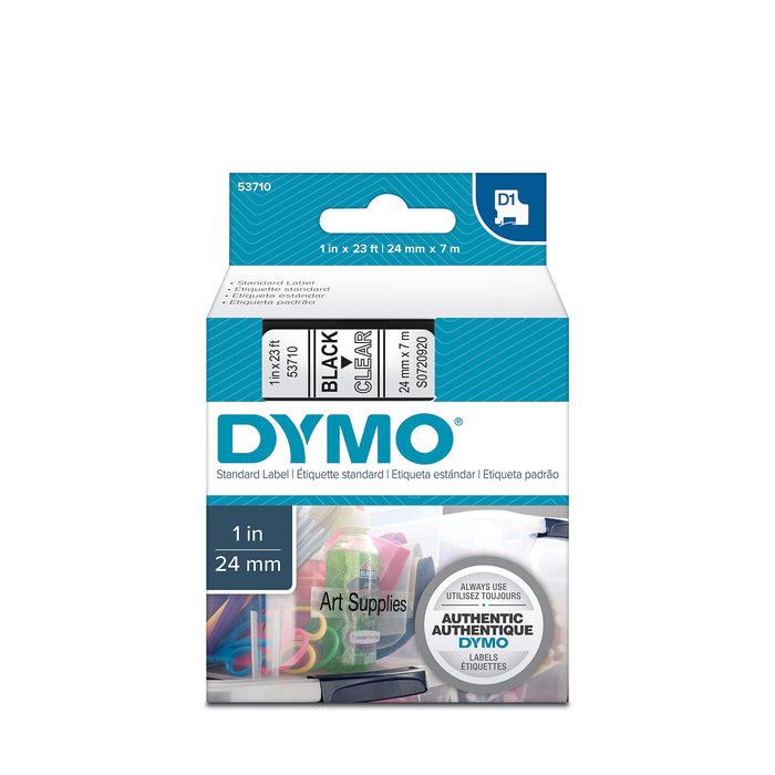 Dymo D1 Standard Self-Adhesive Labels for LabelManager Printers, 24 mm x 7 m - Black Print on Clear.Box Contains1 x tape cassette