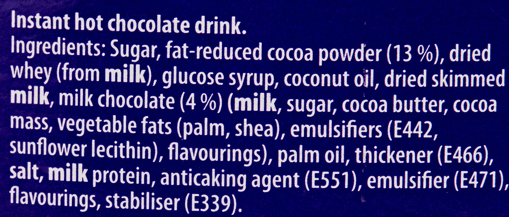 A delicious chocolate break in an instant. Just add hot water. Makes approximately 70 cups. 2kg Tin.