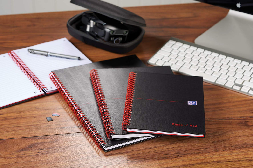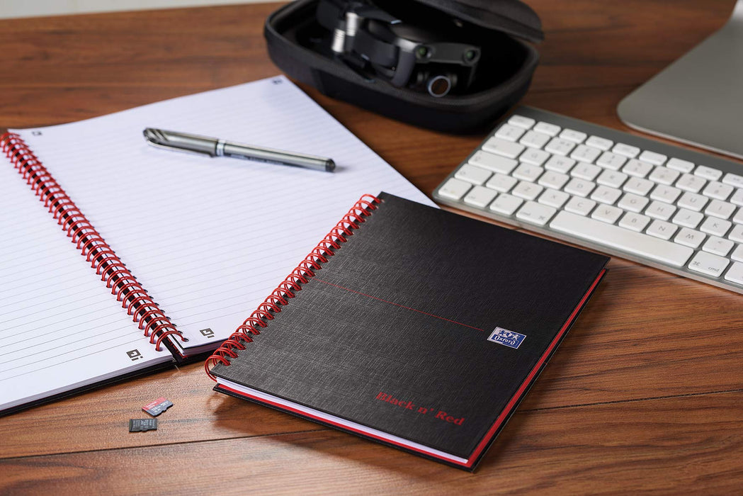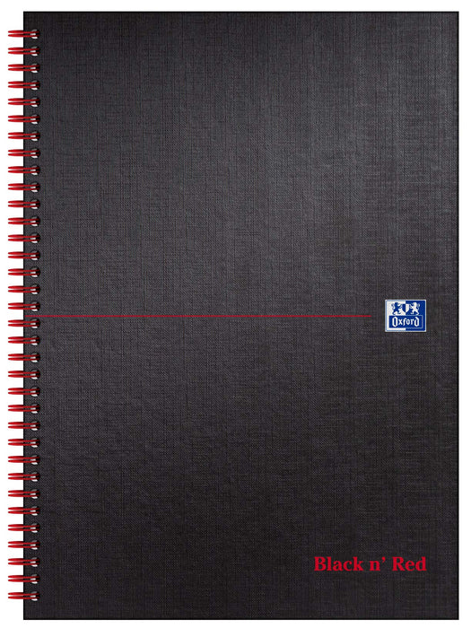 Oxford Black n' Red A4 Matt Hardback Wirebound Notebook Ruled 140 Page, 5 Notebooks