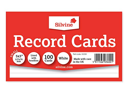 Silvine Record Cards 127 x 76mm Ruled White (Pack of 100). Perfect for revision, note-making, presentations and training