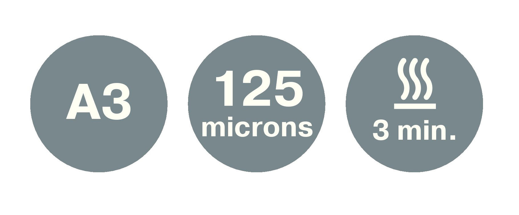 - Uses pouches 75-125 micron thick, laminates items up 0.6 mm thick