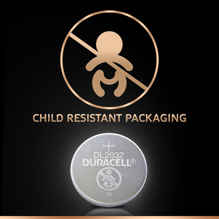 Duracell specialty 2032 lithium coin batteries are made with high-purity lithium with up to 50 percent more power (vs. Key Fob IEC standard test minimum average duration for CR2032 Lithium Coins. Results may vary by device and usage patterns) for your specialty devices. They have up to 10 years of in-storage assure with Duralock Power Preserve technology so you can be confident these lithium coin batteries will be ready when you need them. To help ensure the safety of children, they have been designed with child safety pack: Tamper-proof pack with double blister so that it is impossible for a child to open without scissors. They are designed for use in keyfobs, small remotes, scales, wearables, sensors, medical devices (glucometers, digital thermometers), sports devices (heart rate monitor, bike accessories).Safety WarningCaution: battery can explode or leak if heated, disassembled, shorted, recharged, exposed to high temperature or inserted incorrectly. Do not mix used and new batteries, different brands or types. Keep away from children. Do not swallow. If swallowed, seek medical advice at once.Box Contains2 x battery