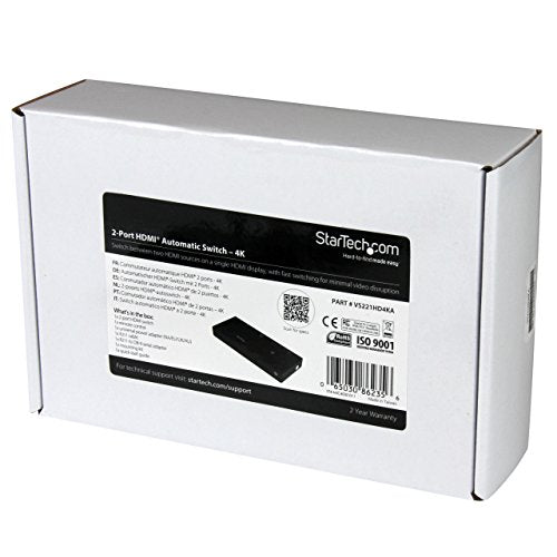 StarTech.com 2-Port HDMI Automatic Video Switch - 4K with Fast Switching