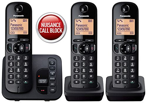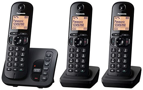 Panasonic KX-TGC223EB Digital Cordless Phone with LCD Display - Black, Pack of 3