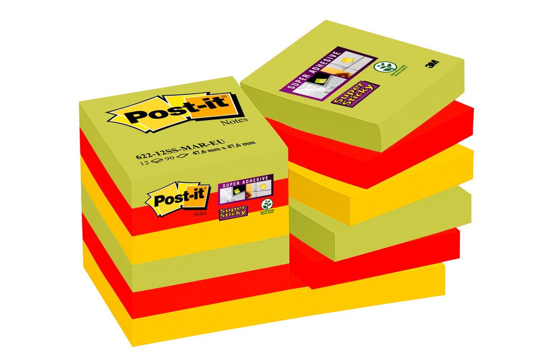 Post-it Super Sticky Notes, 47.6mm x 47.6mm, Marrakesh Colour Collection, 12 pads, 90 sheets per pad
