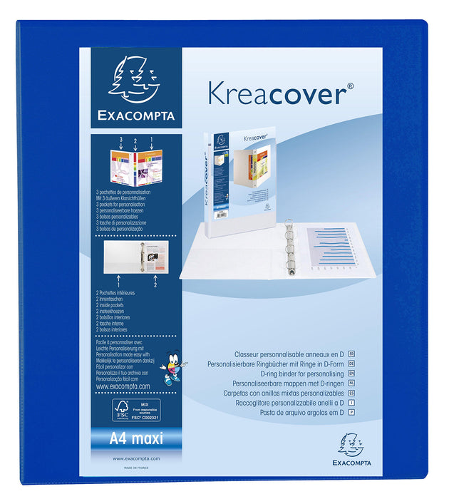 Exacompta Kreacover PP Ring Binder, A4, 4 D-Rings, 75 mm Spine - Blue
