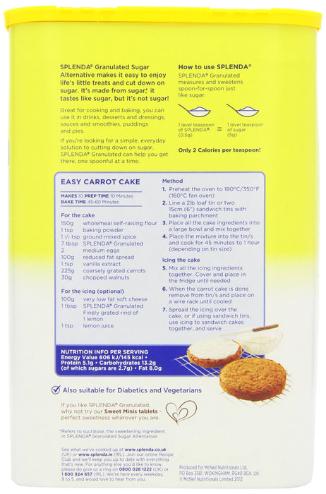 Splenda Granulated Sugar Low Calorie Sugar Alternative 2x125g Tubs